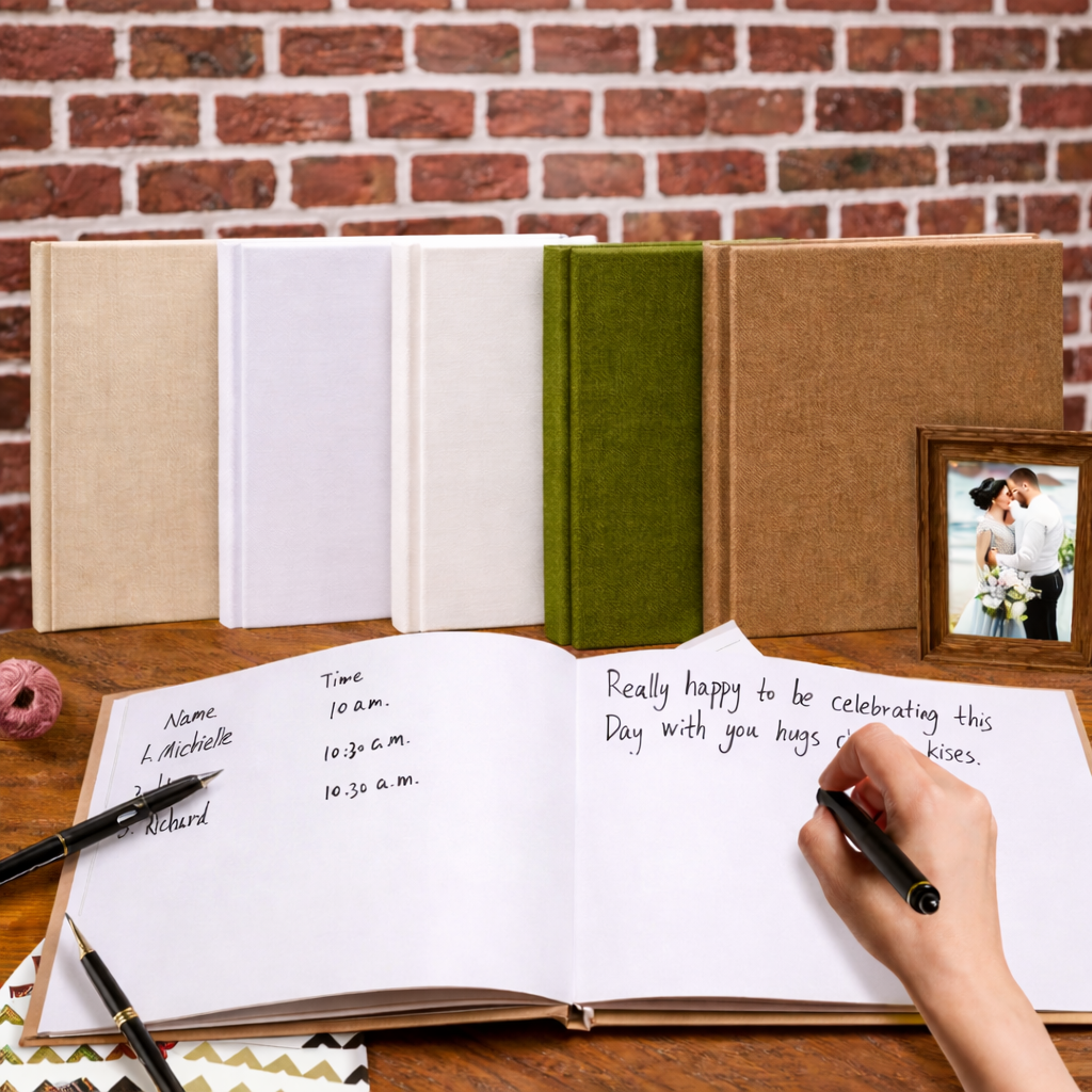 Offrez à vos invités un espace d’expression unique avec notre livre d’or événementiel de qualité premium, conçu pour conserver les mots, les émotions et les souvenirs les plus précieux de votre événement.